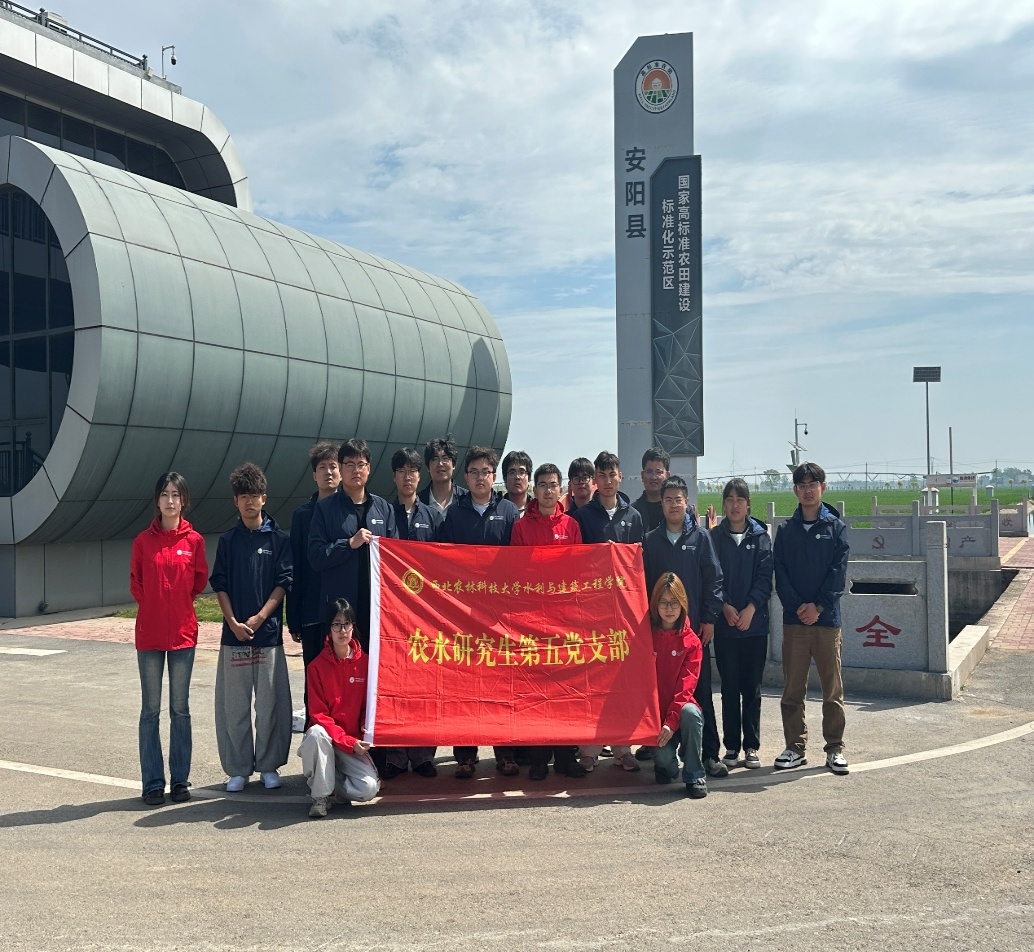 为深入贯彻落实“藏粮于地、藏粮于技”战略,切实强化支部党员保障国家粮食安全的责任担当,西北农林科技大学水利与建筑工程学院农水研究生第五党支部于2026年4月13日组织前往河南安阳高标准农田实验基地开展实地研学主题活动,以科技赋能筑牢粮食安全防线。活动中,团队成员实地察看小麦生长态势,近距离学习新型智能灌溉技术运行流程,详细了解智慧农业设备在节水灌溉、精准管护、提质增效等方面的应用成效,直观感受科技创新与现代农业深度融合的生动实践。