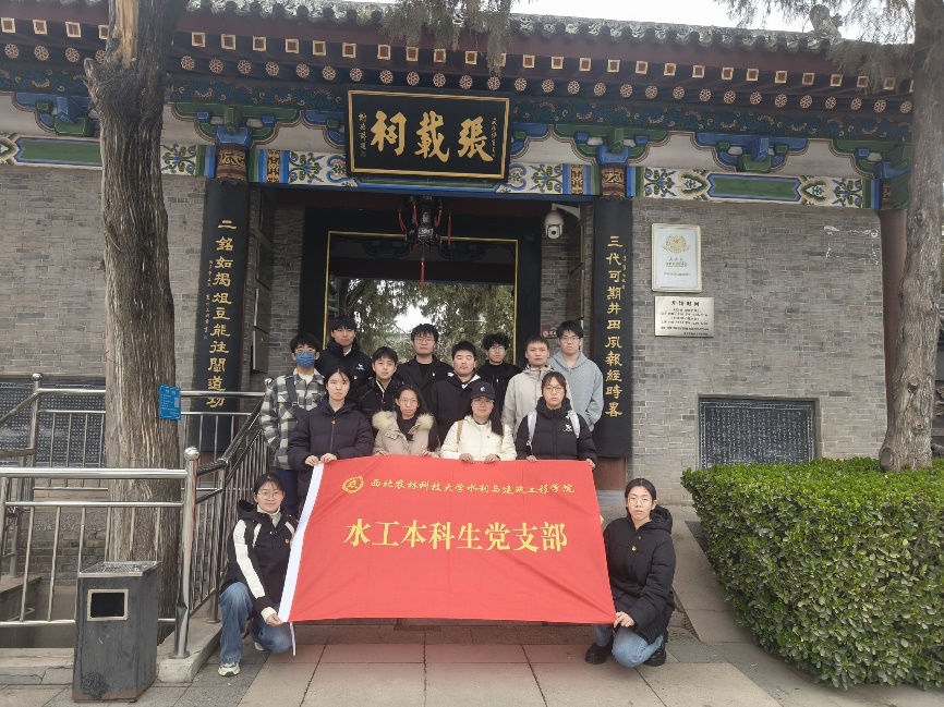 随后,党支部一行赶往眉县横渠镇,参观北宋著名思想家、关学创始人张载的讲学之地——张载祠(横渠书院)。这座青砖灰瓦的古典院落见证了张载年少读书、晚年设馆讲学的岁月。