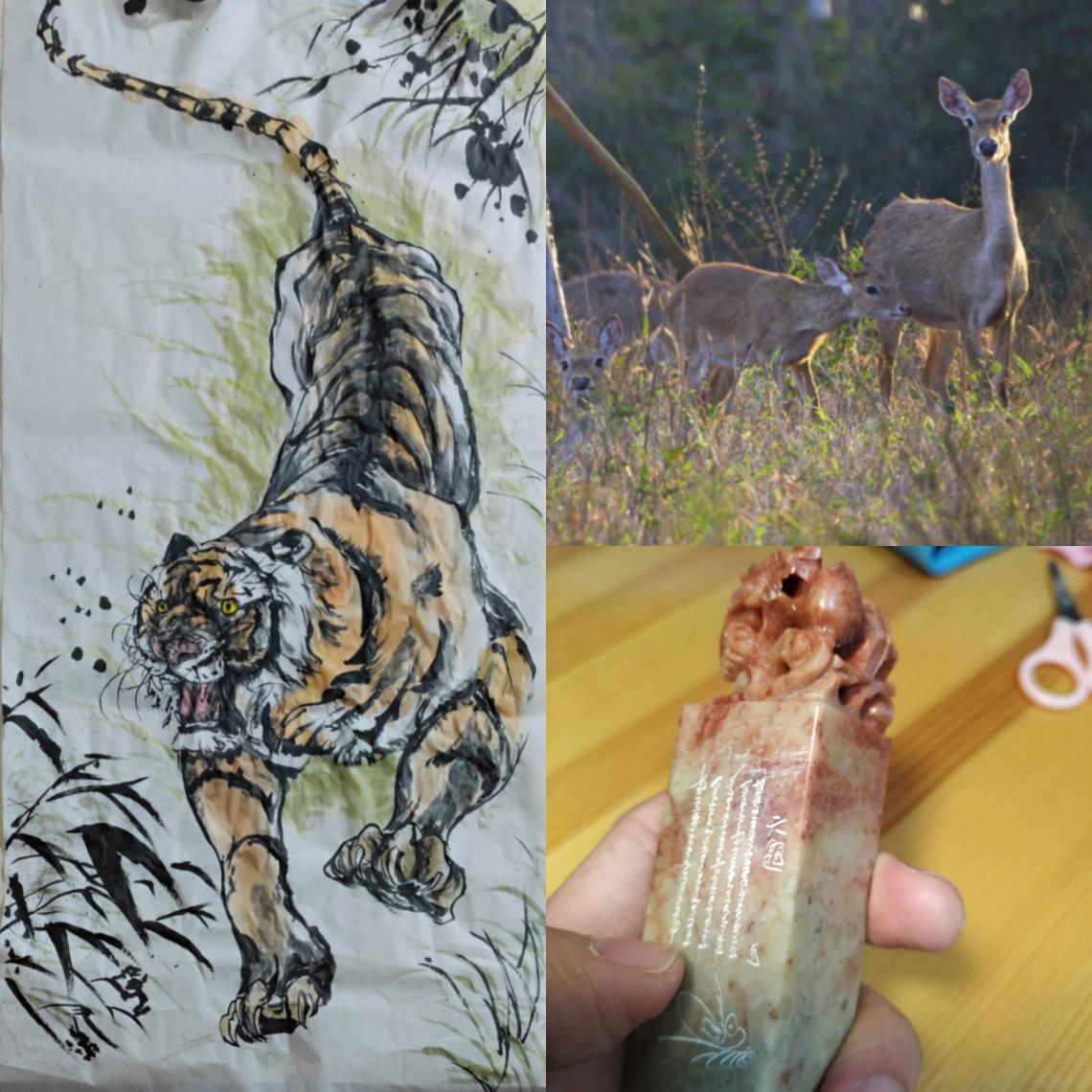 多才多艺的小水滴们寒假回家后纷纷大展身手——绘画、摄影、篆刻、剪辑视频……水利2107班的梁凯发挥绘画功底,画了一只栩栩如生的猛虎,寓意虎年吉祥,虎虎生威。来自水利2105班的黄馨仪一放假就来到海南进行观鸟,天天早出晚归,过程虽然辛苦,但却拍到了不少可爱的动物。水利2107班的陈松羚也大显身手,自己刻制印章。水利2107班的范会懿剪辑了新年短视频,记录美好生活,给大家拜年送祝福。