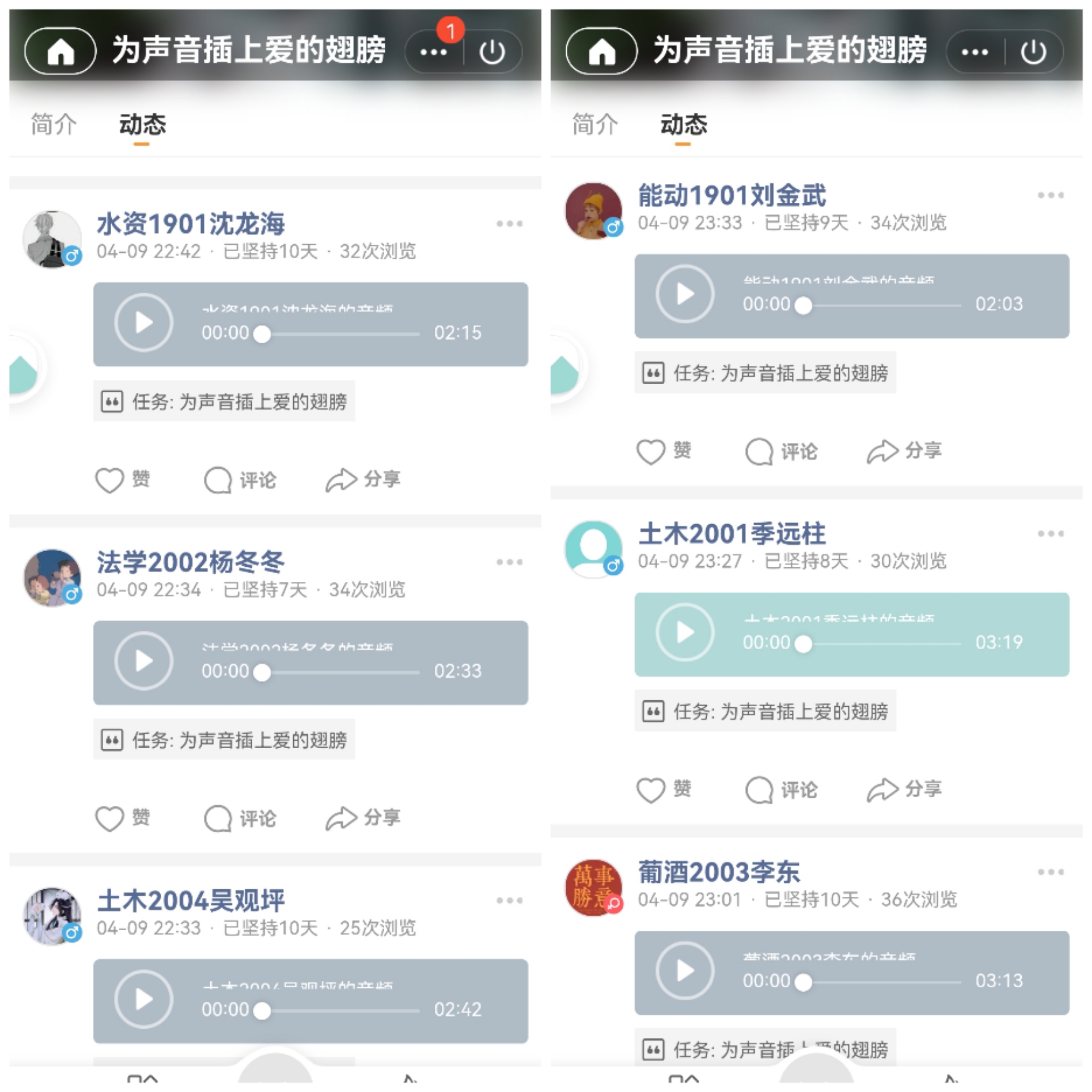 2021年3月31日,西北农林科技大学水利与建筑工程学院阳光团工委支部正式开始举办“为声音插上爱的翅膀”这一活动,活动为期10天,旨在让同学们勇敢地表达出对生活,对一切美好事物的热爱。