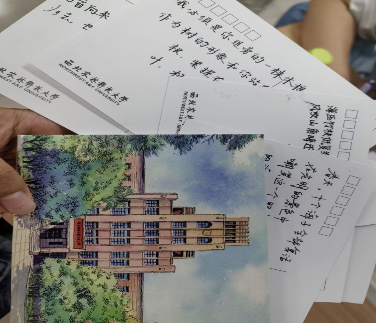 活动以诗为媒牵线搭桥,流程简单高效。同学们在明信片上写下自己喜欢的诗词片段和联系方式,将其投进“诗缘箱”里,再随机抽一张别人的留言,通过“书签邂逅”环节,就能以诗词为话题认识新朋友,同时还能领到一枚定制书签作为纪念。伴随往届诗词大会精彩视频的播放,现场氛围极具诗意。