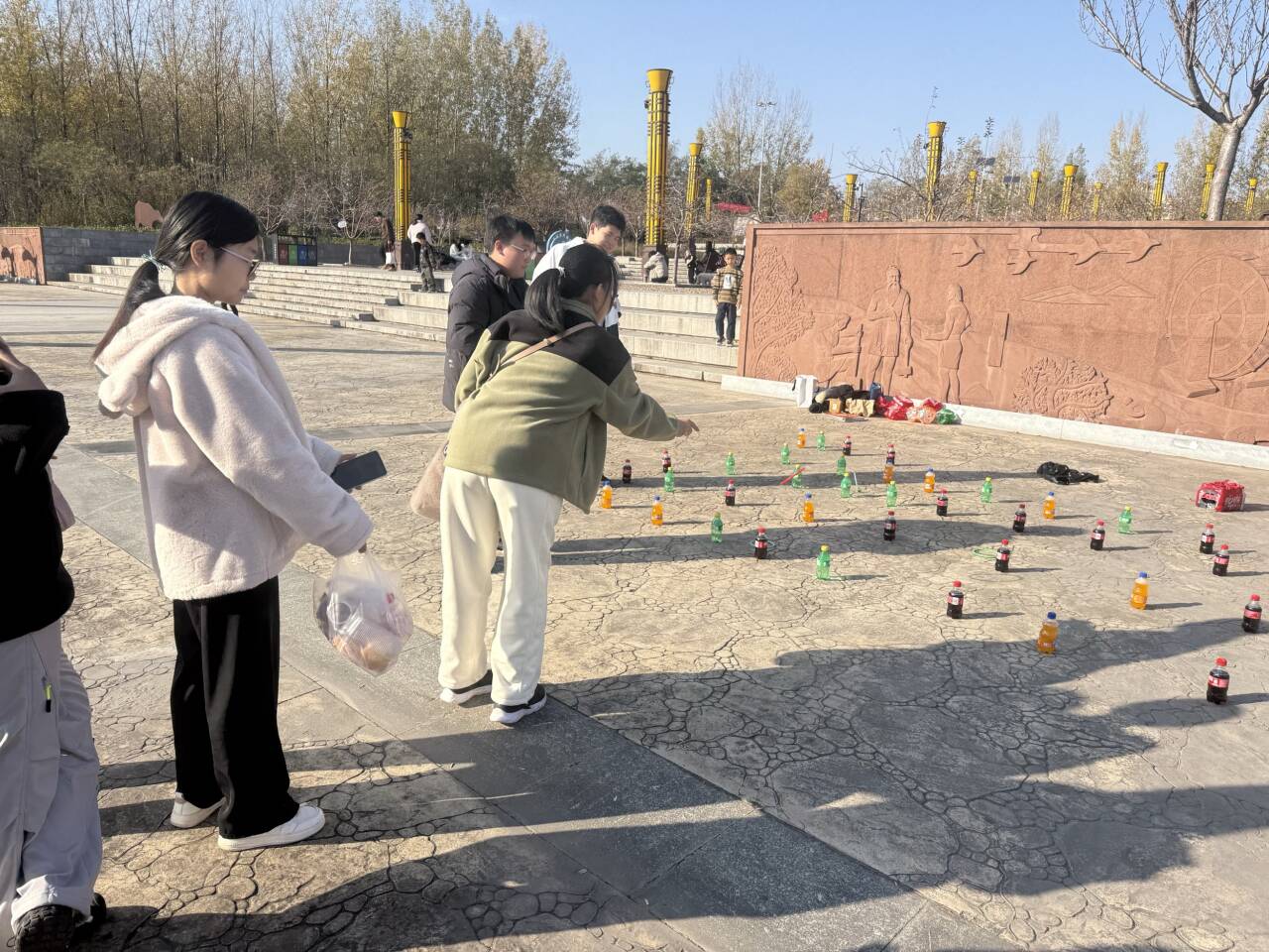 随后,同学们在指定区域集合,进行了形式多样的趣味活动。活动现场设置了投壶、扔球、套圈等游戏项目,同学们积极参与,现场气氛热烈。
