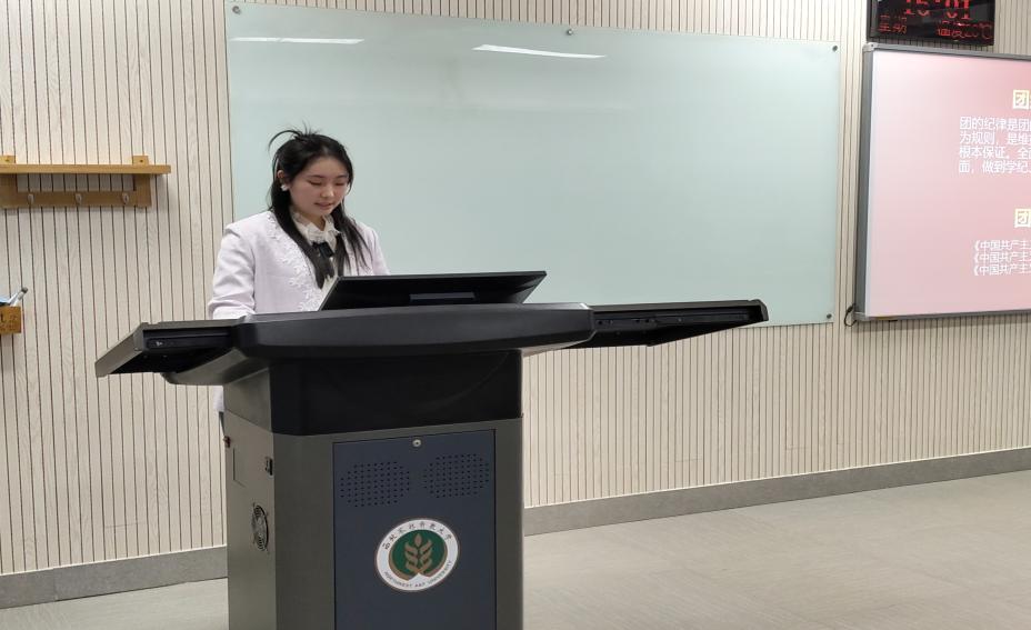 会议以强化思想引领、严肃团内生活为核心,内容扎实、节奏紧凑。首先开展团纪专题教育与党的二十届四中全会精神专题学习,团支部书记王瑶带领全体团员重温团纪核心要求,深入解读全会提出的新思想、新部署、新要求,引导团员们将理论学习与自身成长、专业发展相结合,深刻领会新时代青年的责任与担当。