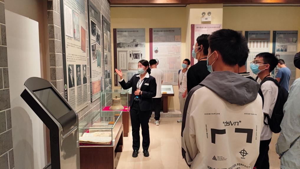 图 讲解员介绍学校发展历史
