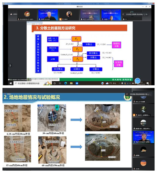 我院高度重视本次会议的举办,设立了西北农林科技大学分会场,分会场参会师生人数40余人。我院副院长樊恒辉研究员作了题为“分散土的鉴别方法与处置技术研究”的特邀报告,胡海军副教授、孟敏强副教授、孙增春博士和梁志超博士生分别作了题为“黄土塬Q3黄土饱和渗透系数原位测试研究”、“冻融及酸性侵蚀条件下粗粒土单颗粒破碎强度试验研究”、“砂-细粒混合料的弹塑性本构模型及数值实现”、“不同含水率下高易溶盐伊犁黄土流变特性研究”的主题报告,张爱军教授和骆亚生教授分别主持了13号下午上半时段分会场一和12号下午上半时段分会场二的学术报告,《水利与建筑工程学报》编辑部作为协办单位支持了本次会议论文的出版。最后樊恒辉副院长代表学校作了承办下届会议的申请汇报。
