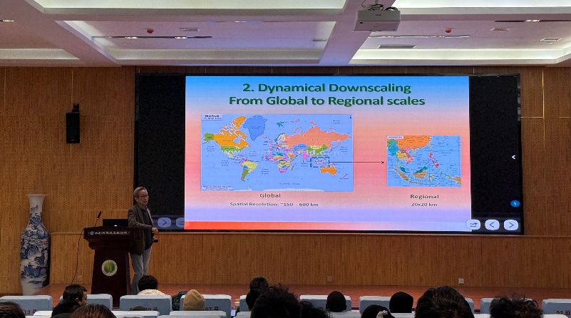 报告会上,梁世锐教授介绍了他们研究团队在气候变化下对水稻产量的影响方面研究所取得的成果,梁教授认为全球城市化的加速与气候波动共同加剧了洪水灾害的威胁,严重威胁到了粮食安全以及社会经济的稳定,针对越南地区,梁教授指出采用水稻生长模型和DSSAT的气候模型开发越南水稻生产风险图集的重要意义。此外,针对洪水模拟和预报,研究了基于MODIS的蒸散量分析、CMIP3和CMIP5情景下整个东南亚气候变化的动力降尺度及预测、东南亚不同区域如新加坡、雅加达、泗水、万隆和胡志明市的洪水模拟/预报的可行性。
