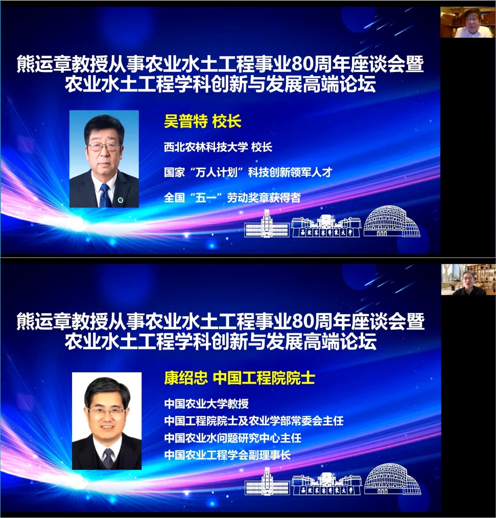 2022年恰逢西北农林科技大学熊运章教授百岁寿诞,也是他从事农业水土工程事业80周年,为进一步弘扬和传承熊运章教授爱党爱国、严谨治学、甘为人梯、潜心科研、勇于创新的精神,研讨农业水土工程学科最新研究成果和未来发展方向,11月29日,由西北农林科技大学水利与建筑工程学院(旱区农业水土工程教育部重点实验室)主办的“熊运章教授从研80周年暨农业水土工程学科创新与发展高端论坛”在国际交流中心举行。